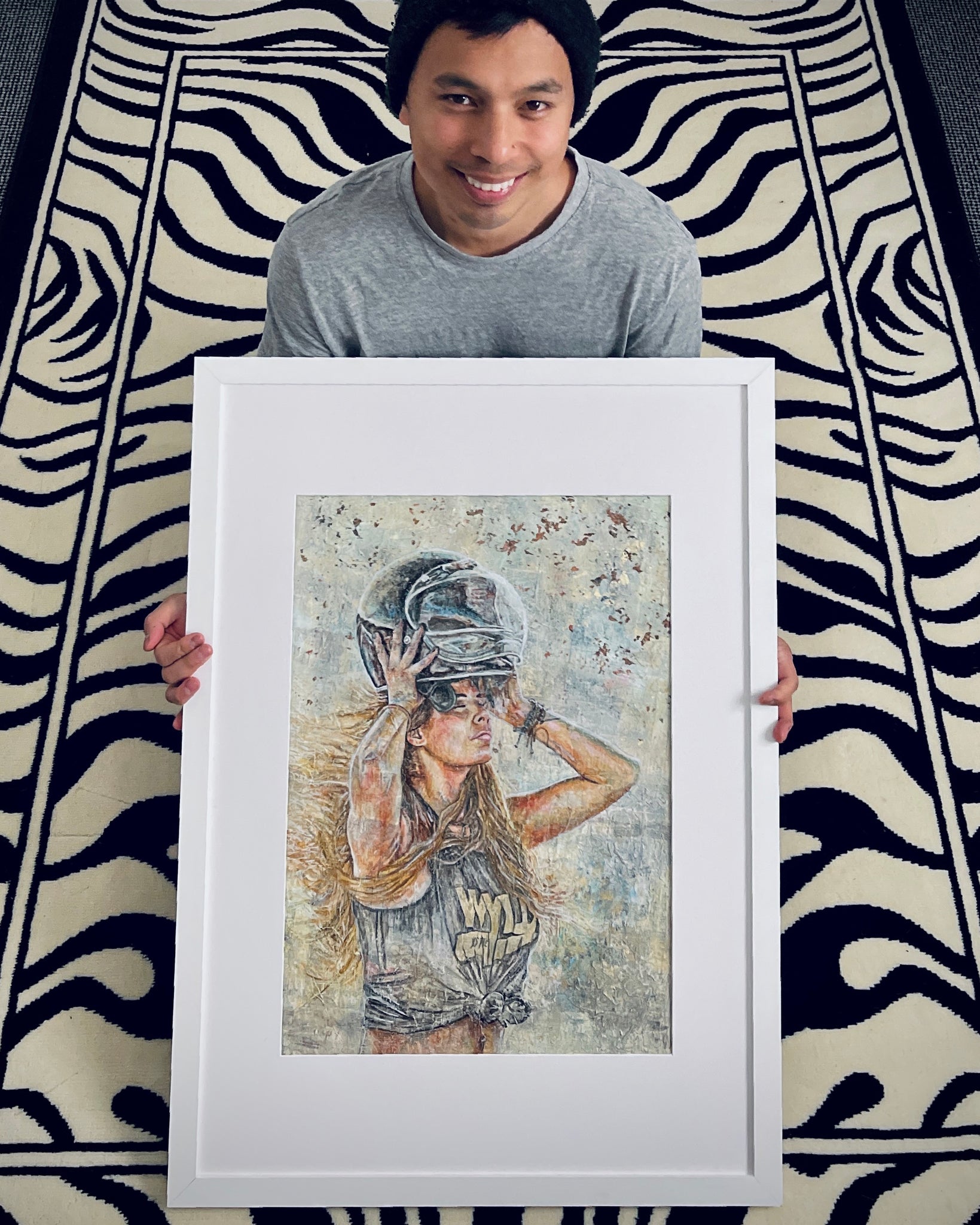 The size of the art is 42x60cm (16.5in x 23.4in). However, the art comes in a large 60x84cm (23x33in) frame
