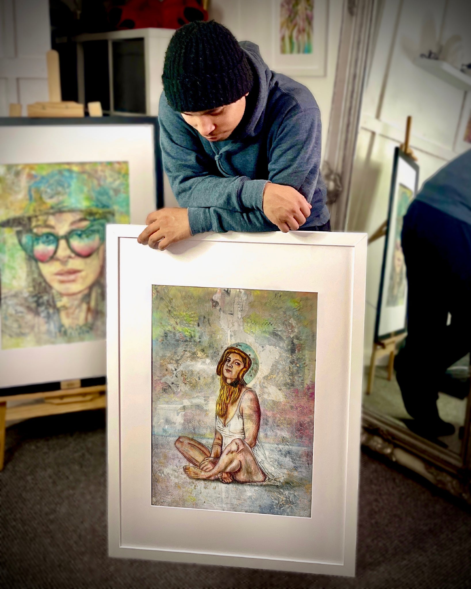 The size of the art is 42x60cm (16.5in x 23.4in). However, the art comes in a large 60x84cm (23x33in) frame